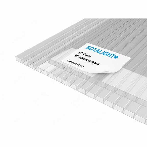 Сотовый поликарбонат 6 мм SOTALIGHT прозрачный 2100х6000 мм