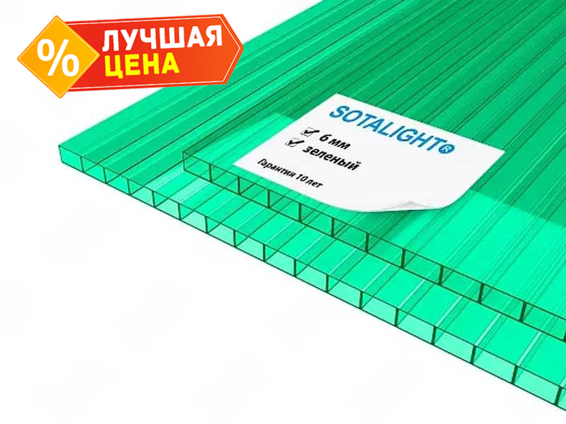 Сотовый поликарбонат 6 мм SOTALIGHT зелёный 2100х12000 мм - это прочный и легкий материал, который отлично подходит для использования в различных строительных и дизайнерских проектах. Поликарбонат обладает высокой прочностью и устойчивостью к воздействию внешних факторов, что делает его идеальным выбором для создания надежных и долговечных конструкций.