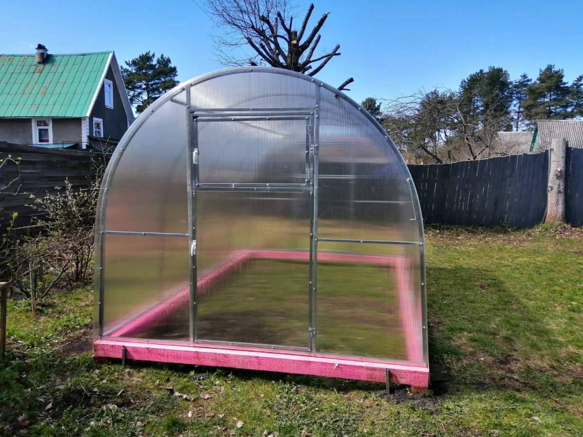 В разобранном виде теплица состоит из отдельных сварных рам в виде дуги.