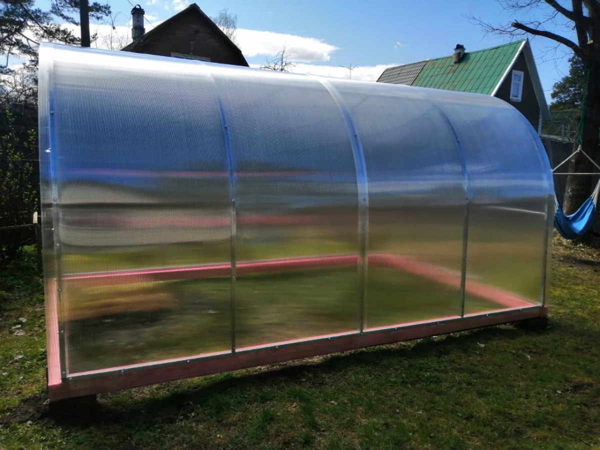 • поликарбонат толщиной 4 мм (в транспортном состоянии свёрнутые в рулон листы имеют диаметр до 80 см и длину 2,1 м)