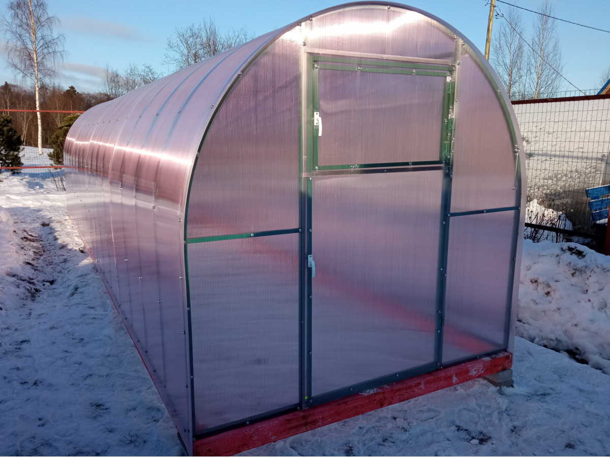 Теплица из поликарбоната-фито Усиленная Арочная 2,1х12 h=2 м профиль 25х25 мм Зеленый