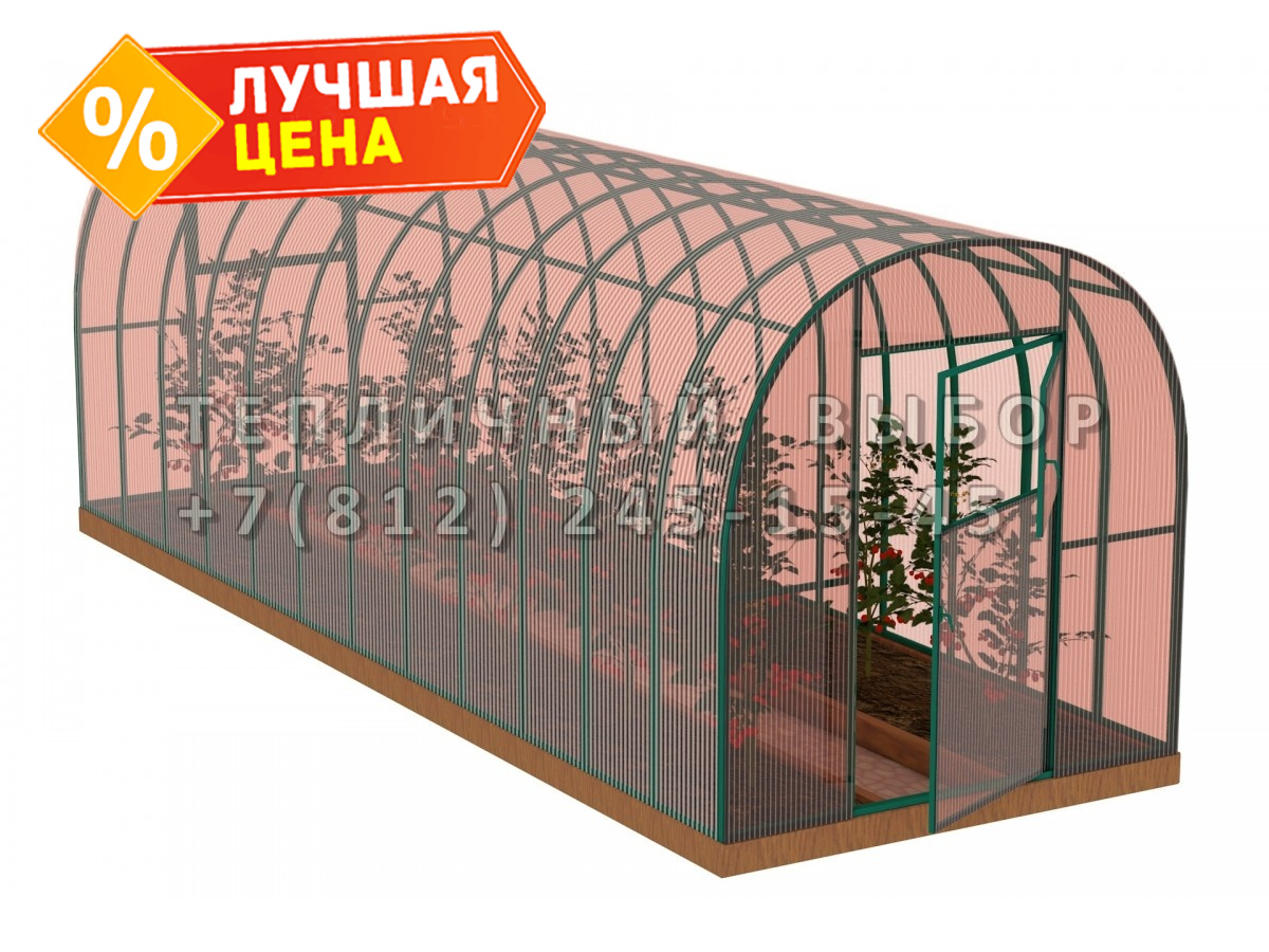 Теплица из поликарбоната-фито Усиленная Арочная 2,1х6 h=2 м профиль 25х25 мм Зеленый