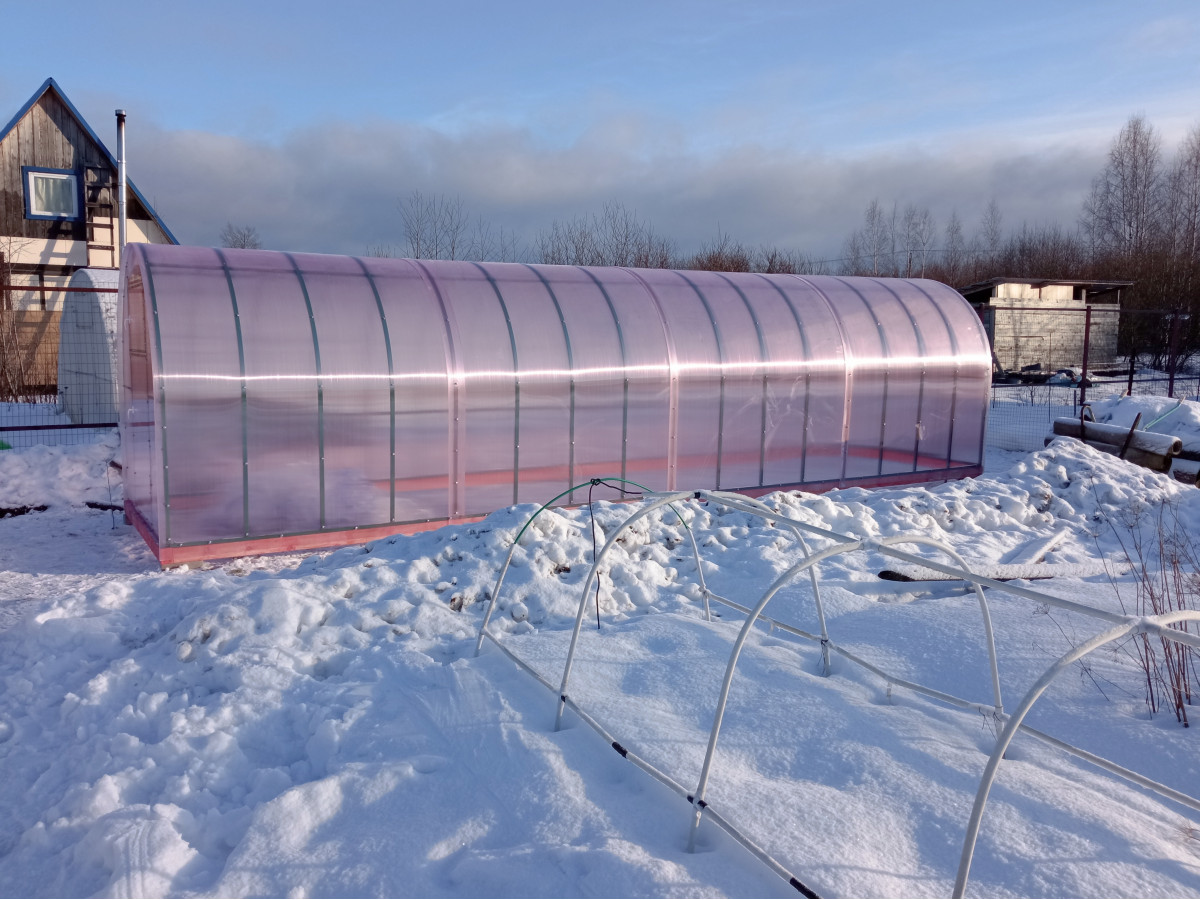 • узкая арочная конструкция с крутым скатом препятствует скоплению снега в зимний период