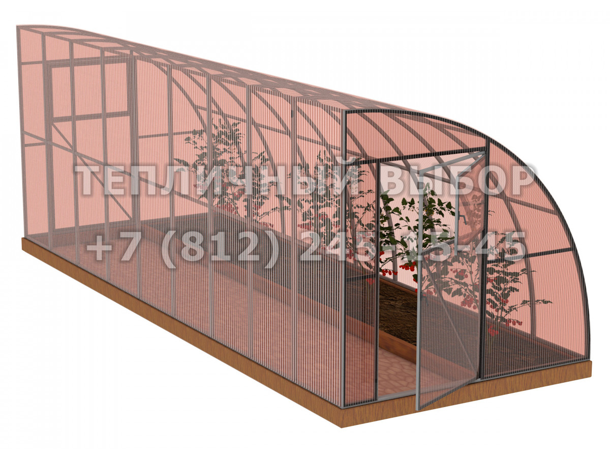 • практичный каркас с дверьми и форточками в каждом торце обеспечивает легкий доступ в теплицу и её проветривание;