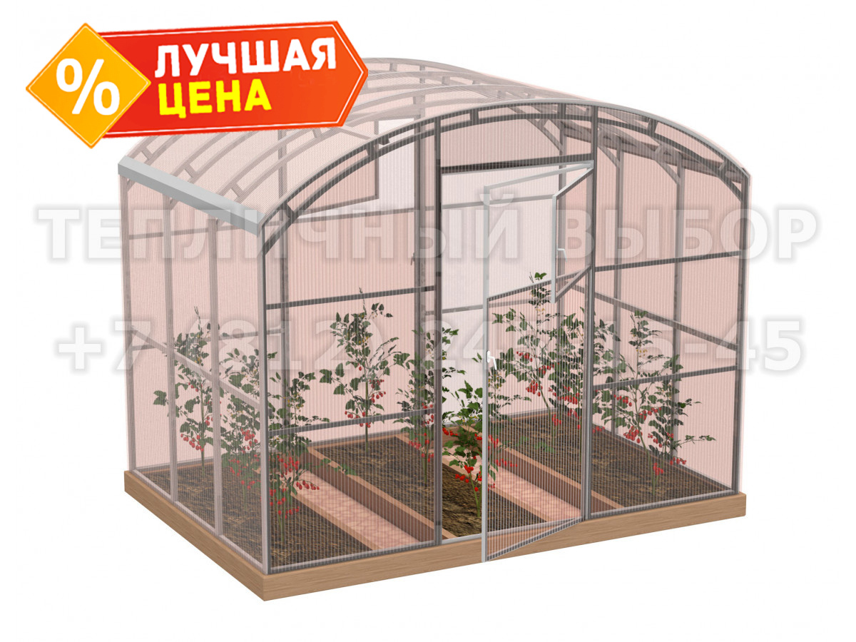 Теплица из поликарбоната-фито Усиленная Прямостенная 2,5х2 h=2.1 м профиль 20х40 мм
