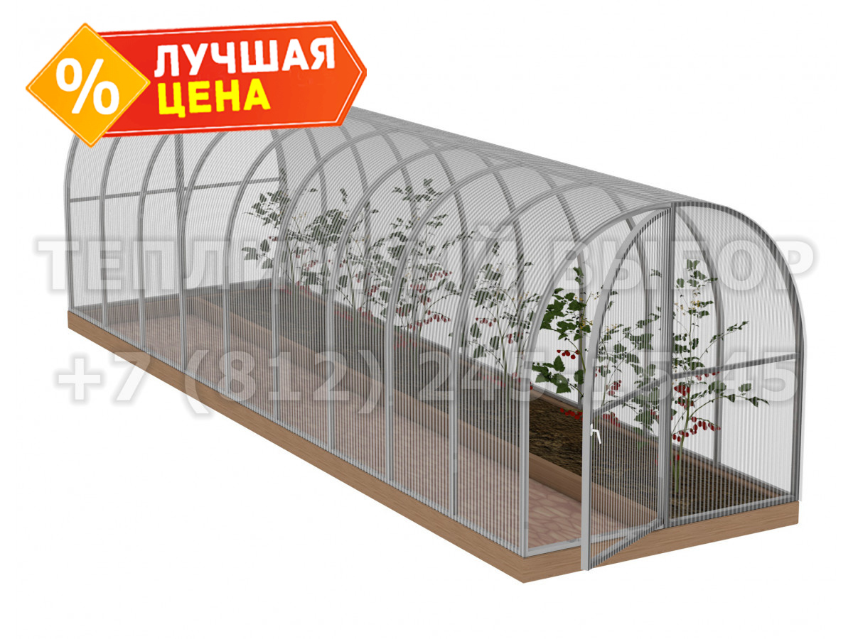 Теплица из поликарбоната Усиленная Арочная 1,6х6 h=1.68 м профиль 20х20 мм