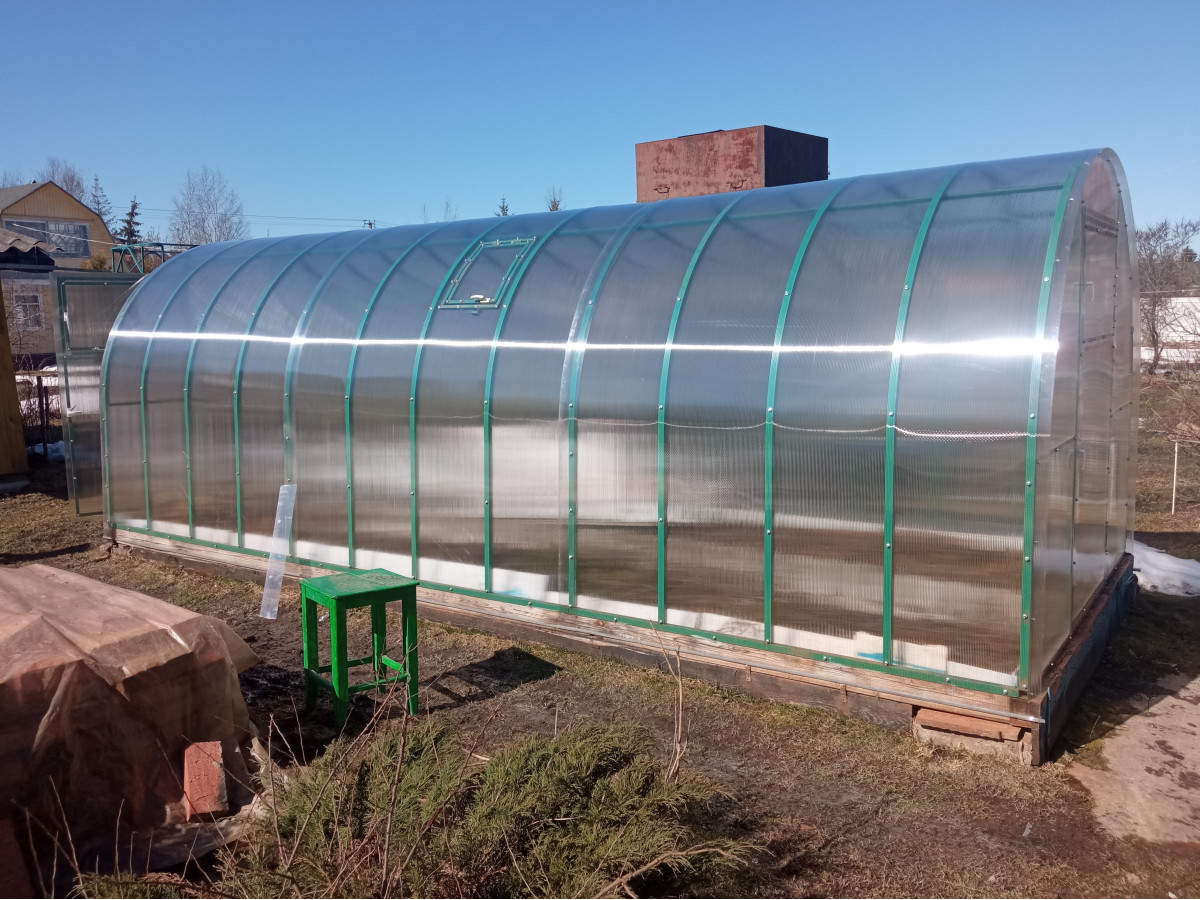 • поликарбонат толщиной 4 мм (в транспортном состоянии свёрнутые в рулон листы имеют диаметр до 80 см и длину 2,1 м)