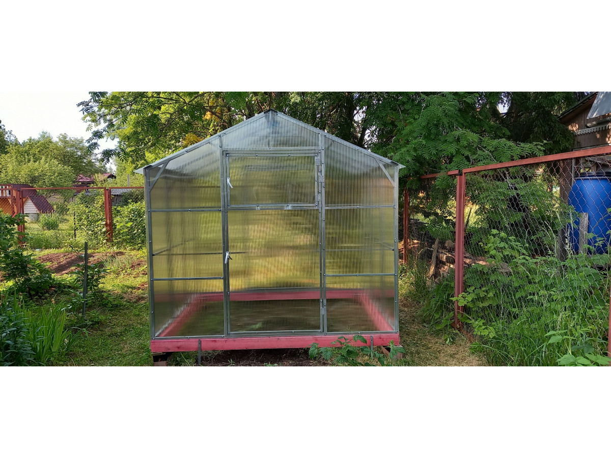 • практичный каркас с дверьми и форточками в каждом торце обеспечивает легкий доступ в теплицу и её проветривание;
